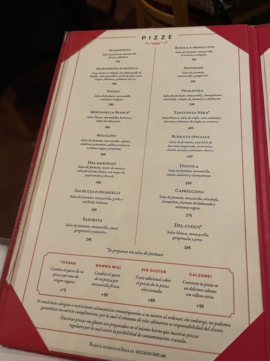 Welcome to Vecchio Forno, a charming Italian restaurant nestled in the heart of Ciudad de Mexico. This inviting trattoria features a cozy ambiance complete with a wood-fired pizza oven, perfect for indulging in a variety of authentic pizzas, from the classic Margherita to the gourmet Burrata Speciale. Each dish showcases a blend of high-quality ingredients like creamy mozzarella and fresh basil, all reasonably priced for sharing.